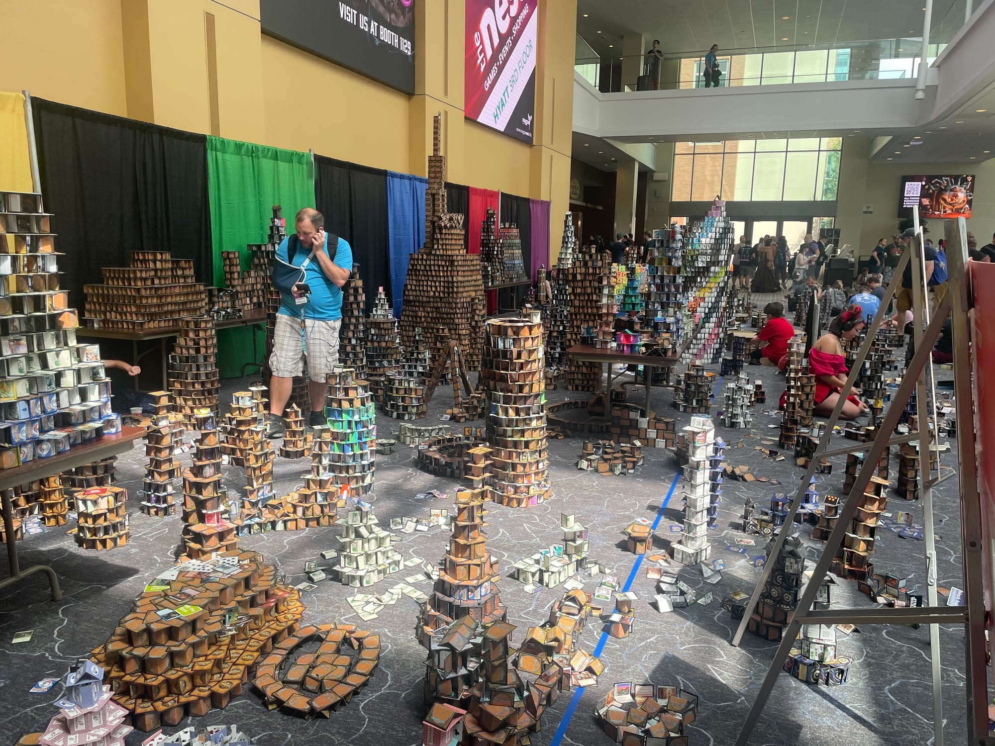 It turns out we weren't the only "card castle" there - Cardhalla was basically a room full of them! Cardhalla is a charity event where people can build card towers out of trading cards throughout the show and destroy them at the end. The towers are destroyed by people throwing coins at them and then those coins are donated to charity. The history of the event is interesting too.